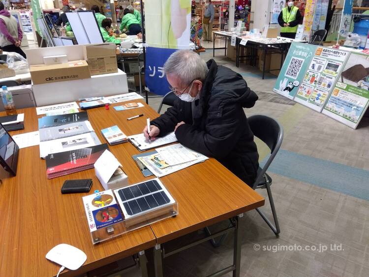 12月13日(土)イオン高の原店にて開催された「エコフェスきづがわ」に出展いたしました。おかげさまで、たくさんのお客様にご来場いただき、太陽光発電システムや蓄電池・内窓をメインに、省エネに関するご案内をさせていただきました。 物価の上昇や電気代の高騰が続いています。すぎもとでは省エネにつながる住宅設備機器の販売・設置を行っております。ご興味のある方はすぎもとまでお気軽にお問い合わせくださいね。 アンケートにご協力いただきました皆様、ありがとうございました!