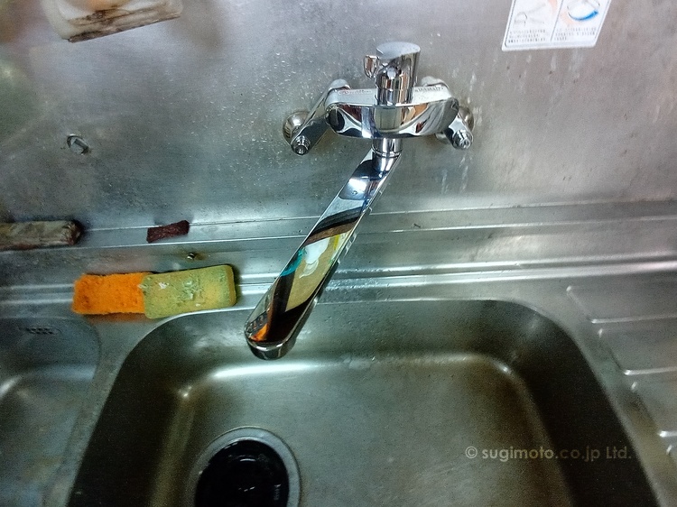 壁付けシングルレバーの在庫があったのですぐ交換出来ました。(こうなる前に早い目の交換をお勧めします。)
